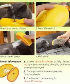 Cat & Dog Grooming Brush | USB Rechargable | 3-in-1 Electric | Steam – Yellow