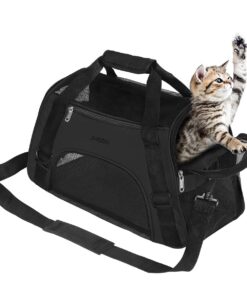 Black Cat Carrier Soft-Sided Pet Travel Carrier for Cats Dogs Puppy-L