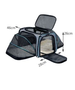 Breathable Expandable Foldable Soft Dog Cat Travel Bag Pet Carrier Bag – Black with blue