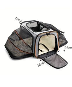 Breathable Expandable Foldable Soft Dog Cat Travel Bag Pet Carrier Bag – Black with orange