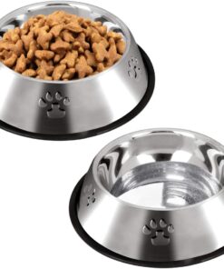 2 x Stainless Steel Food Bowl and Water Bowl for Dog and Cat