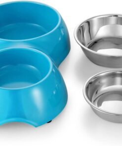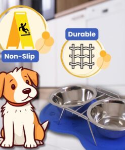 Dog/Cat Bowl – Pet Feeder with Non-Slip Rubber Feeding Mat – Blue
