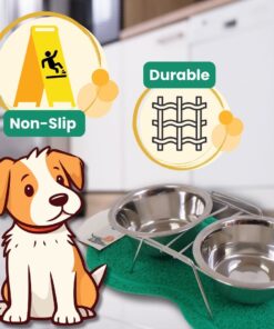 Dog/Cat Bowl – Pet Feeder with Non-Slip Rubber Feeding Mat – Green