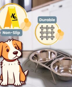 Dog/Cat Bowl – Pet Feeder with Non-Slip Rubber Feeding Mat – Grey