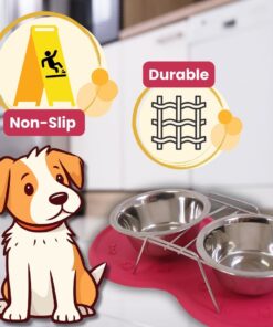 Dog/Cat Bowl – Pet Feeder with Non-Slip Rubber Feeding Mat – Pink