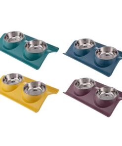 Double Dog Cat Bowls Stainless Steel Pet Bowls No-Spill Resin Station – Yellow