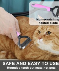 Double Sided Pet Hair Remover Undercoat Rake Comb for Dogs and Cats – Pink