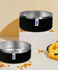 Double-Wall Non-Slip Stainless Steel Food and Water Pet Bowl | 64oz – Black Stainless Steel Pet Bowl