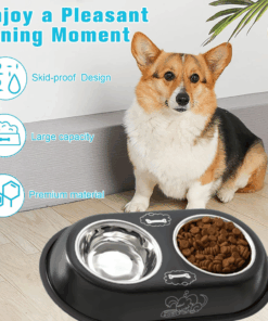 Double Water and Food Bowls for Dog Cat Stainless Steel & Non-Slip Station