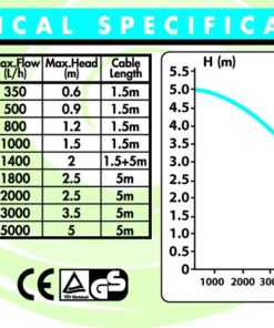 DragonFly Pond or Fountain Pump 5000 L/h with 5m Cable & 3 Core Plug