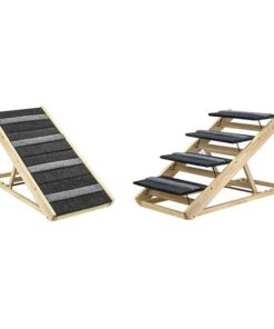 Foldable Wooden Dog Ramp & Stairs – Non-Slip Adjustable Portable Pet Steps
