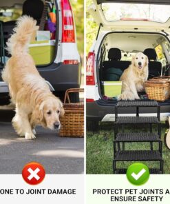 4 Steps Foldable Dog Stair Metal Frame Dog Steps with Foam Grip