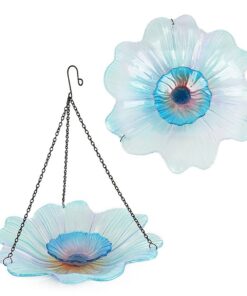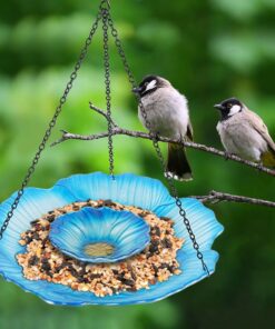 Garden Bird Sunflower Feeder Outdoor Glass Hangings Bird Bath – Blue
