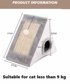A-PET Triangular Cat Cave Scratching Pad Foldable Faux Fur Covered