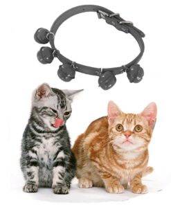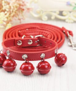PU Leather Small Dog Cat Collar and Leash with 5 Bells-Black