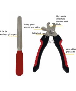 Stainless Steel Pet Nail Clipper with Safety Lock – Red, Black