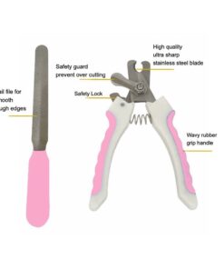 Stainless Steel Pet Nail Clipper with Safety Lock – White, Pink