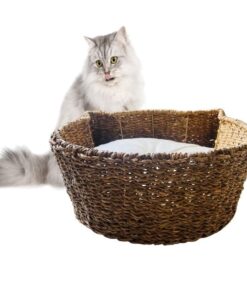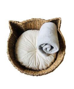 The Cat’s Ears – Seagrass Woven Pet Bed Basket with Cushion & Blanket