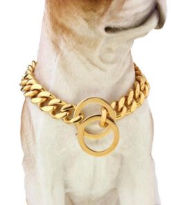 UrbanPets – Dog Collar Plated Gold Stainless Steel Cuban Curb Link Chain – XL