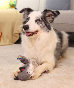 UrbanPets – Fox Raccon Durable Plush Dog Toy with Rope and Squeaker – GreyRaccon