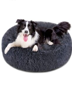 UrbanPets – Premium Fluffy Dense Plush Cat and Dog Round Cuddle Calming Bed – Dark Grey – XL