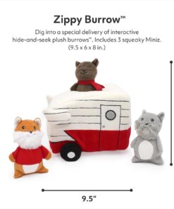 ZippyPaws Zippy Burrow Interactive Hide & Seek Dog Toy – Retro Camper