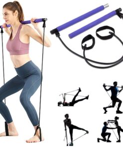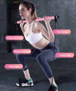 Portable Fitness Exercise Pilates Bar Stick with Resistance Band – Pink