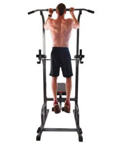 Adjustable All-in-One Pull-Up Bar Tower Dip Station with Bench Bar