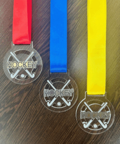 Medals Hockey Clear Plexiglass with Gold, Silver & Bronze (36 Units)