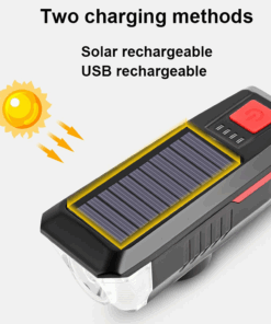 Waterproof Solar Powered Bicycle Light Set USB Rechargeable with Bike Horn