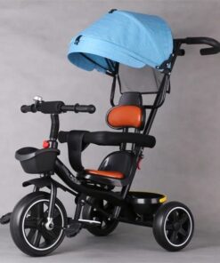 Children’s Umbrella 3-Wheel Tricycle With Push Bar Balance – Blue