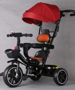 Children’s Umbrella 3-Wheel Tricycle With Push Bar Balance – Red