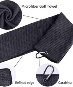 Black Waffle Pattern Tri-Fold Golf Towel with Black Club Groove Cleaner