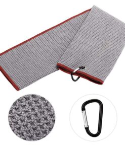 Gray Waffle Pattern Tri-Fold Golf Towel with Black Club Groove Cleaner