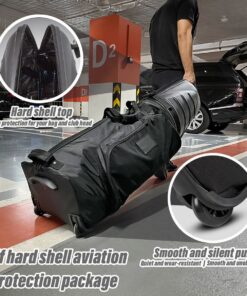 Hard Shell Top Foldable Golf Club Air Travel Bag with Pulleys -Black