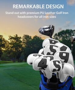 Heartdeco Pu Leather Golf Club Iron Head Cover 10 Piece Set – White