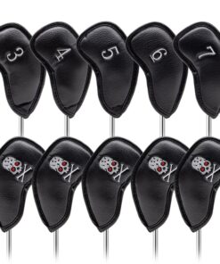 Skull PU Leather Golf Iron Head Covers Set – 10-Piece – Black