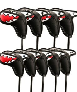 9 Piece Cute Shark Shape PU Leather Golf Iron Head Covers Set – Black