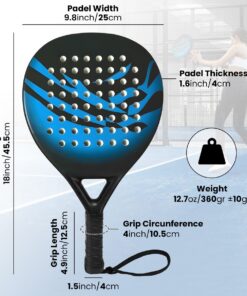 Carbon Padel Racket with Cover Bag Paddle Tennis Racquets Set – Blue