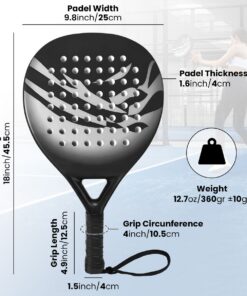 Carbon Padel Racket with Cover Bag Paddle Tennis Racquets Set – Grey