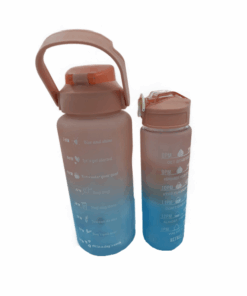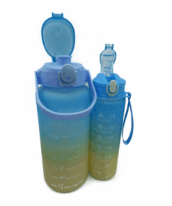 2 in 1 Motivational Time Marked Water Bottle – 2ltr & 1ltr set – Sky