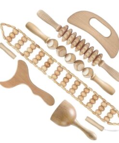 6-Piece Wood Massage Tools Kit with Luxurious Beau Labs Serum Elixir
