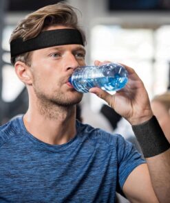 Sweatbands Set Head Band and Wrist Bands – Absorbent Elastic Sport Bands – Black