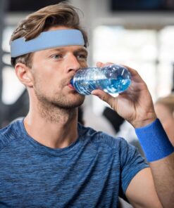 Sweatbands Set Head Band and Wrist Bands – Absorbent Elastic Sport Bands – Blue