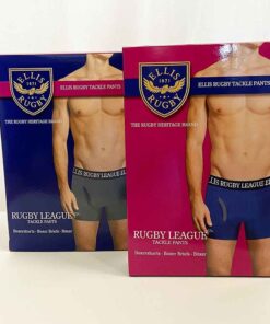 Ellis Rugby – Men’s Rugby League Boxer 2-Pack Trunks – Navy/Grey – M