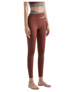 GymPanther – Dual Colour Cross V Waist Leggings – Rust Red – M