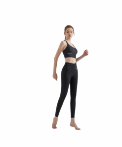 Gympanther Diamond Neckline T-Shirt and Long Leggings Activewear Set – Jet Black – S