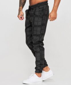 APEY – Joggers Checkered Mens Joggers Casual Tapered Pants -Dark Grey – M
