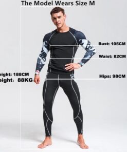 APEY Mens Workout Compression Gym Set – Sports Tights & Long Sleeve Shirt – XL