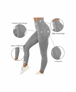 GYMPANTHER Sexy Stretchy Sportswear Leggings with Phone Pocket – Grey – L